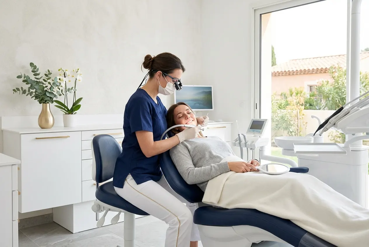 Le Cabinet dentaire Giboin Clemenceau vous accueille dans un environnement soigné, rassurant et moderne à Sanary-sur-Mer. Chaque prise en charge est pensée pour allier clarté, précision et confort, avec une attention constante portée à votre sourire et à votre sérénité.