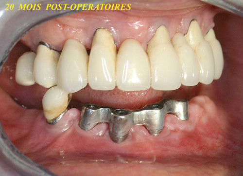 L’état initial (fig.26) montre une péri implantite généralisée au maxillaire et à la mandibule.