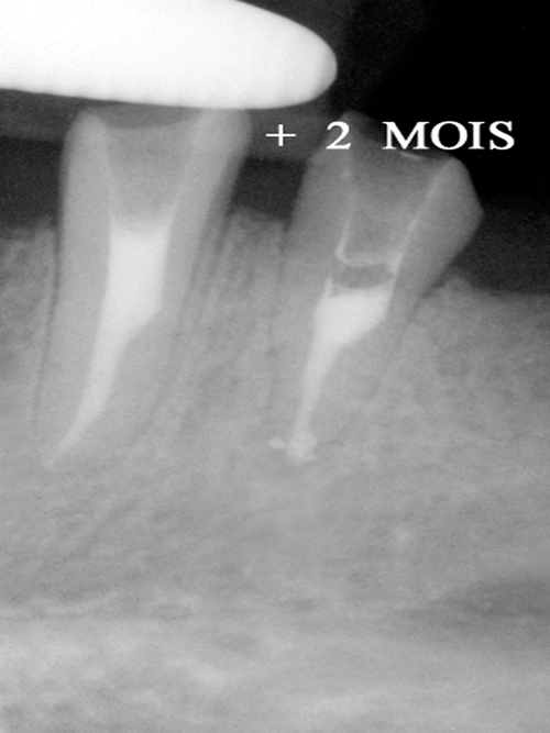 NOTE : Il est parfois nécessaire, en cas de kyste important, d’effectuer une petite chirurgie de curetage péri apicale complémentaire afin d’optimiser le résultat final dans de bonnes conditions.